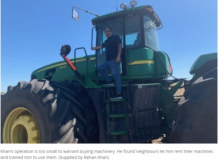Khan 的 160 英亩农场与萨斯喀彻温省的许多农场相比,相对较小,这使得很难找到愿意出租机器的公司,他说。幸运的是,附近的一个农场主家庭愿意出租他们的机器——甚至还教他如何使用它。