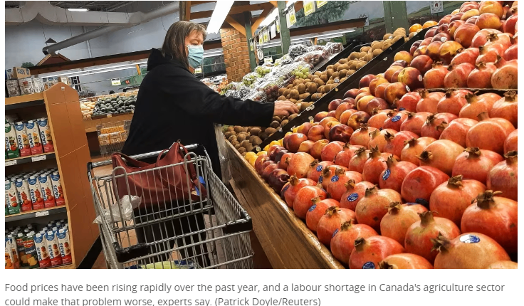 像预测的那样的劳工危机可能会迫使加拿大人在杂货店花更多的钱。
