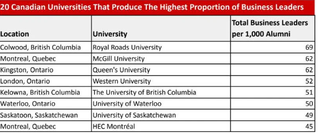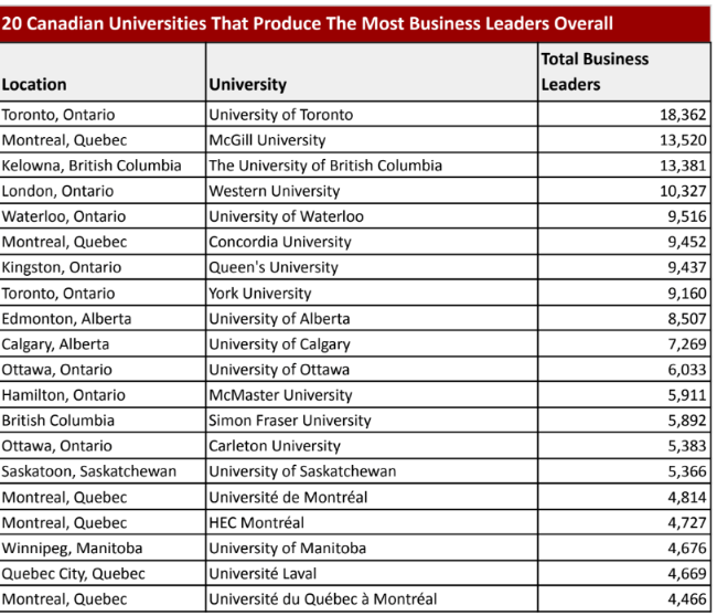 拥有最多商业领袖的加拿大大学名单!