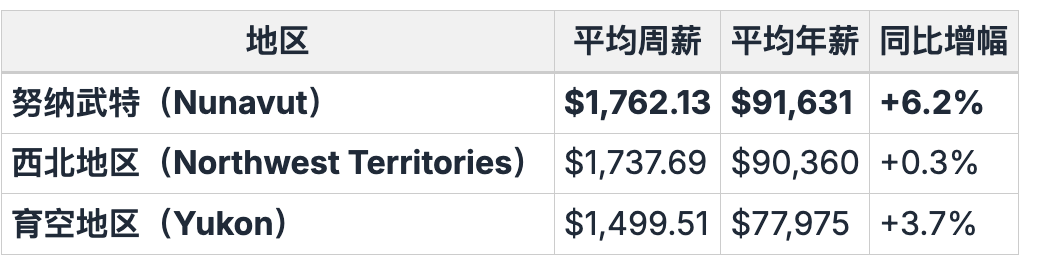 加拿大北部三大地区的薪资最高,但同时面临极高的生活成本。