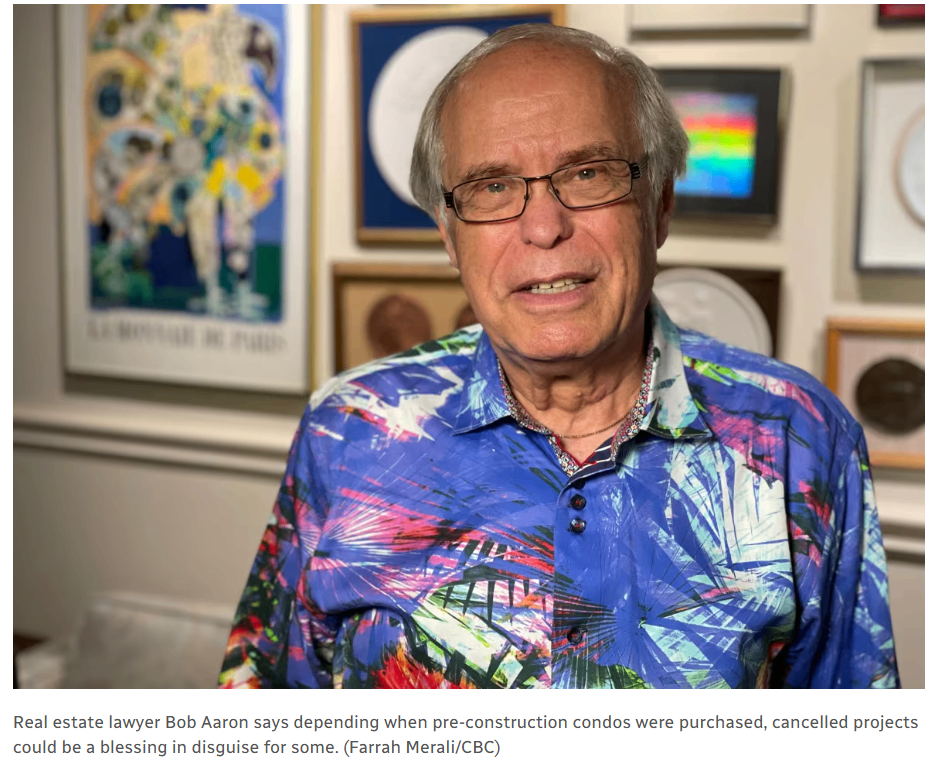 房地产律师 Bob Aaron 指出,部分在疫情期间高价购买预售公寓的买家,现在甚至欢迎项目被取消
