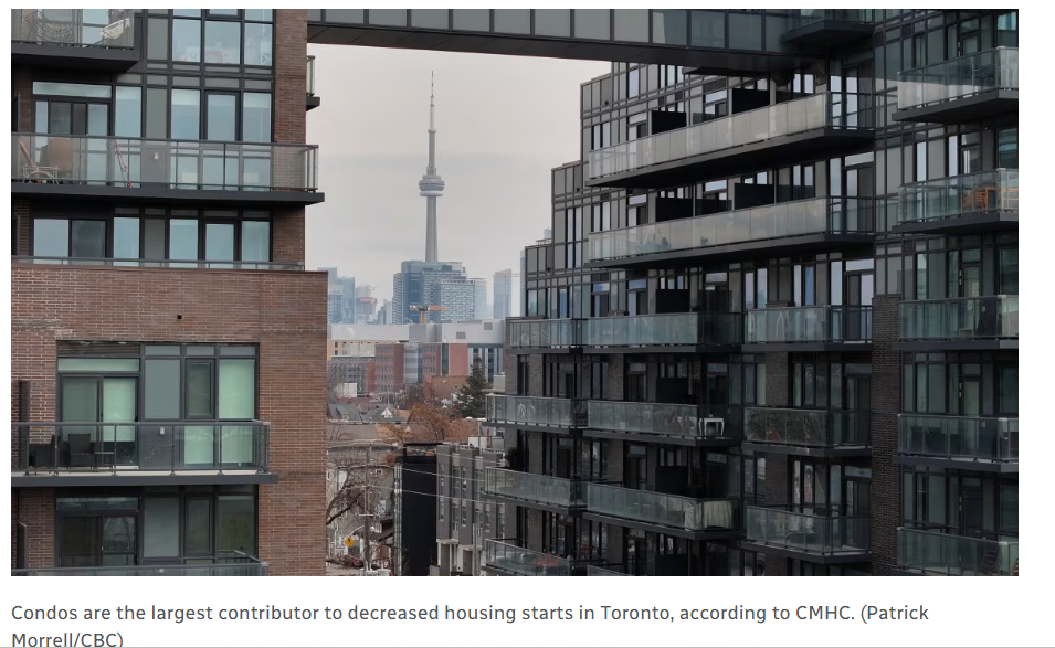 CMHC 报告称,多伦多公寓开工量在今年上半年**“暴跌”,成为整体住房开工量下滑的最大推手,住房开工总量创下自2009年以来最低点**。