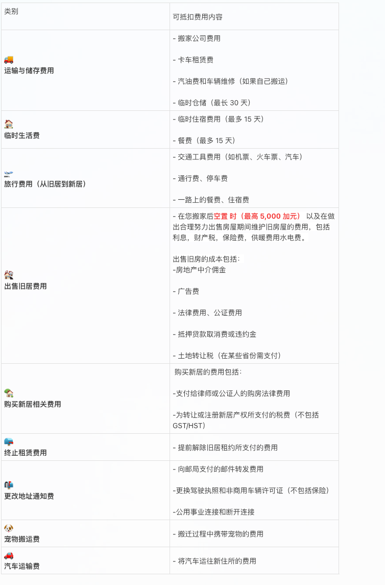 CRA 明确列出可抵扣的搬家费用如下: