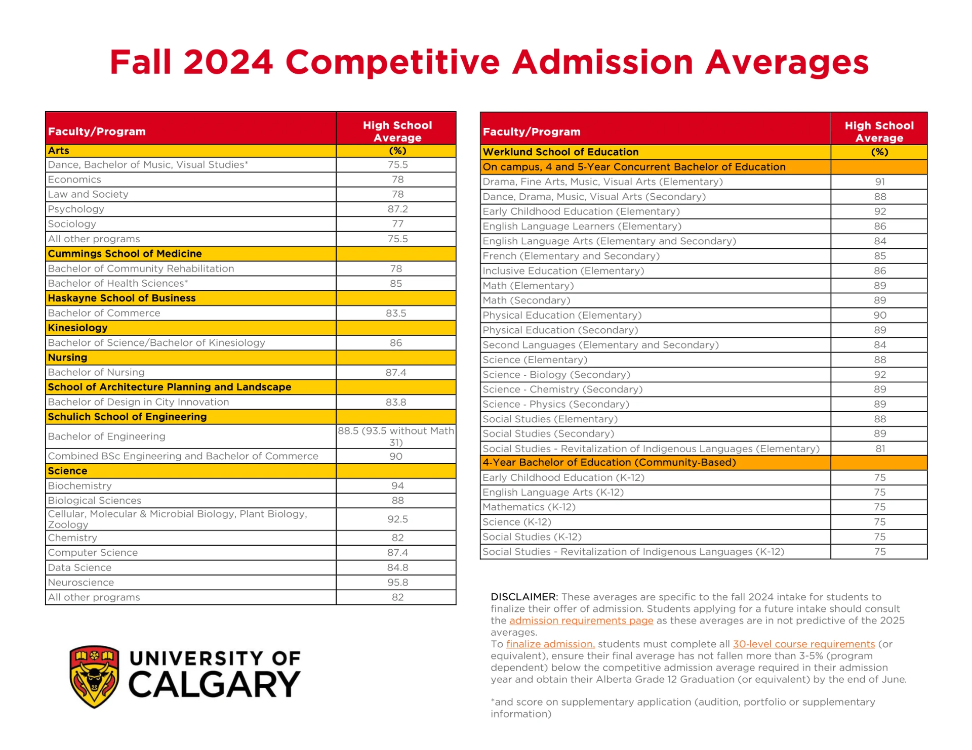 随着需求持续超过招生容量,录取平均分水涨船高”——卡尔加里大学声明