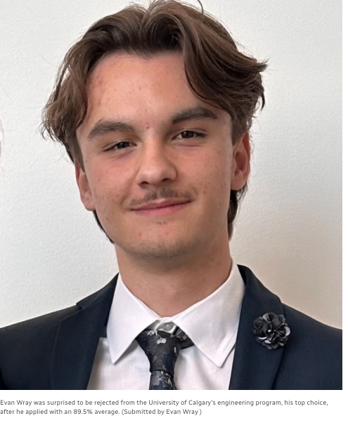 埃文·雷(Evan Wray 去年申请卡尔加里大学工程学专业时,他相信自己 89.5% 的平均成绩足以获得录取。
