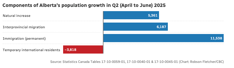 * 国际永久移民成为 2025 年第二季度艾伯塔省人口增长的重要因素,净增加 11,538