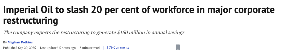 卡尔加里大学公共政策学院执行研究员 Richard Masson 表示,帝国石油的裁员幅度相当大。虽然石油行业的大规模裁员往往反映了整个行业的挑战,但这次举动更多是出于削减成本的考虑。