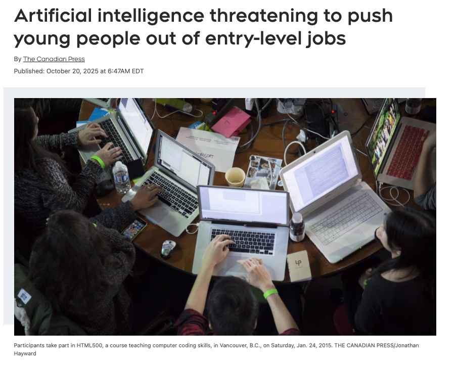 “正因为这些工作在消失……我们看到可供新人的入门岗位数量正在减少。”