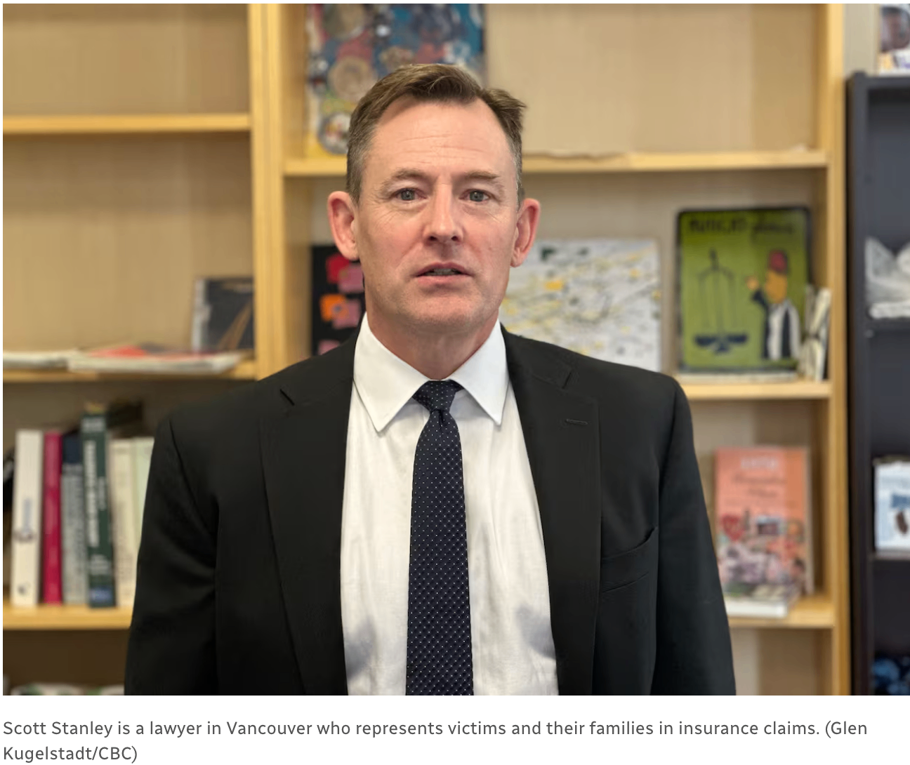 斯科特·斯坦利是温哥华一名律师,代表事故受害者及其家属处理保险索赔。(Glen Kugelstadt/CBC)