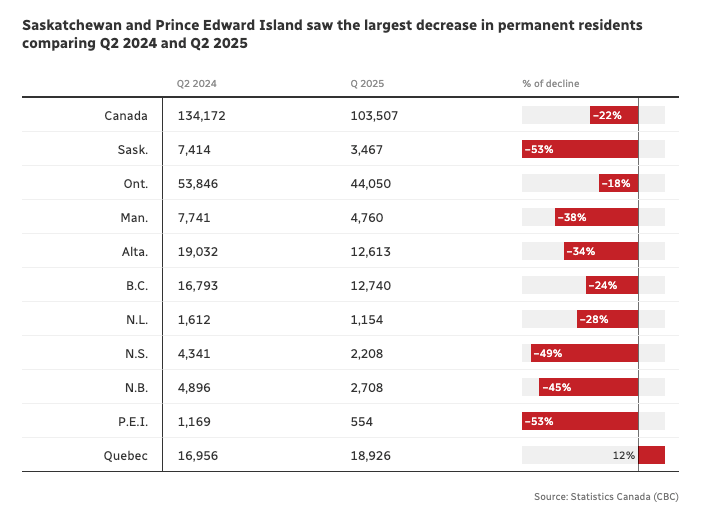 联邦统计数据显示,萨斯喀彻温省的难民申请数量在联邦和省级移民大幅削减后激增近 98%,与此同时,永久居民人数减少了一半以上。