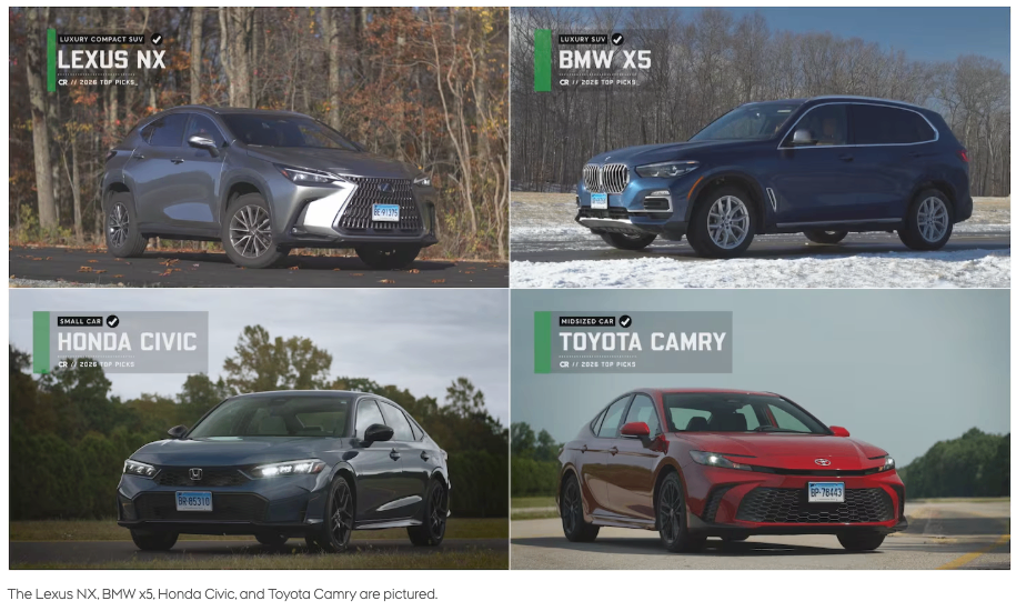 打算买新车?来看《消费者报告》评选的 2026 年十大车型