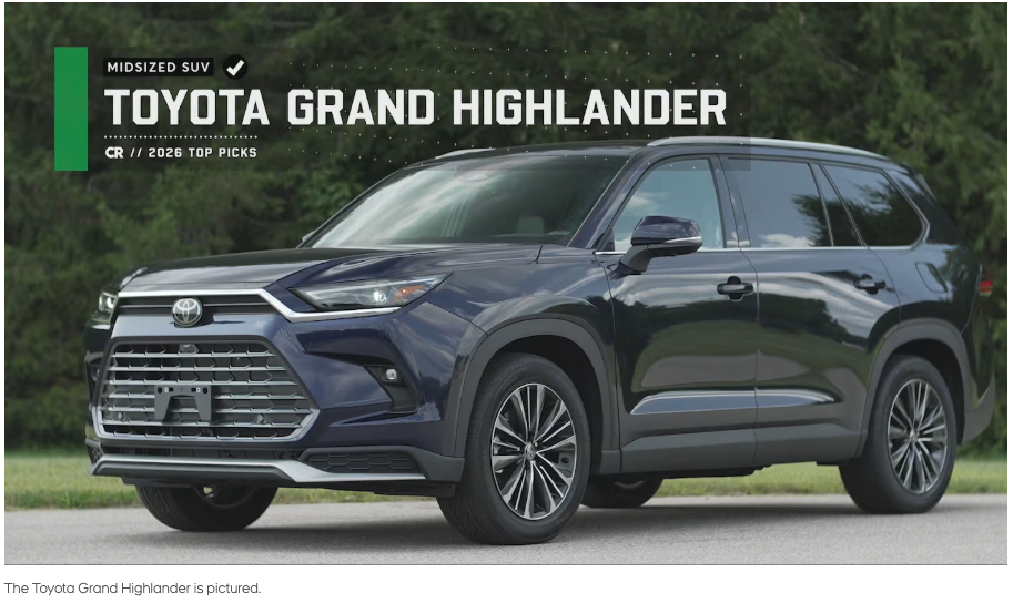 在**中型 SUV(Midsize SUV)**类别中,丰田 Grand Highlander 也入选为最佳车型之一。