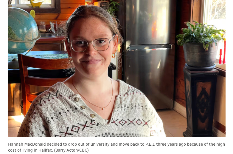 2023 年 3 月,Hannah MacDonald 决定放弃在新斯科舍省的大学学业,回到自己的家乡爱德华王子岛。“实在太贵了,我已经负担不起在哈利法克斯生活。”她说。