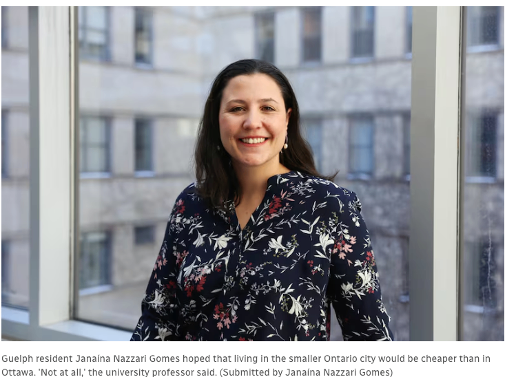 住在圭尔夫的 Janaína Nazzari Gomes 原本以为,小城市会比渥太华便宜。“完全没有。”这位大学教授说。