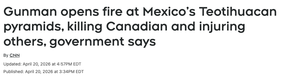 一名加拿大女子死亡,另有多人在墨西哥特奥蒂瓦坎金字塔发生的枪击事件中受伤。