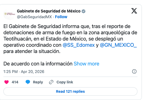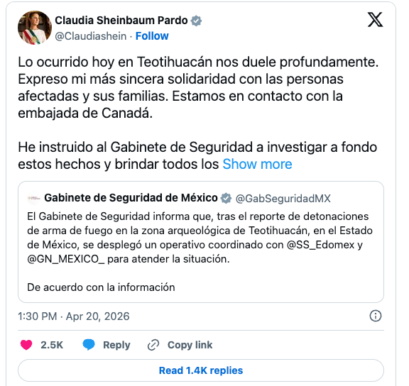 墨西哥总统 Claudia Sheinbaum 表示,联邦、州和地方各级机构都正在处理此事。