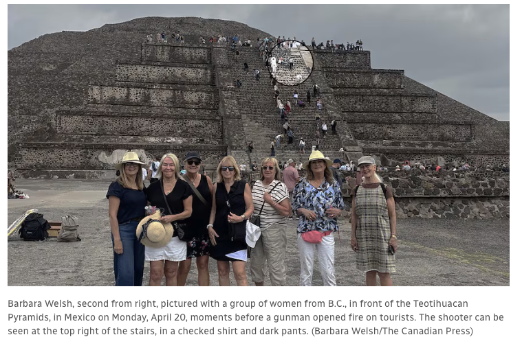 墨西哥金字塔枪击前一刻被拍下:卑诗省游客合影背景中出现枪手,造成一名加拿大人死亡、多人受伤
