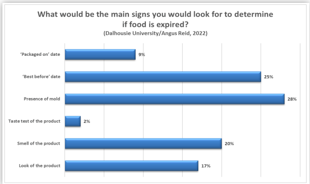 根据Dalhousie大学农业食品分析实验室的调查结果,27%的人表示他们会支持这一举措。30%的加拿大人反对取消“最佳食用日期”以减少浪费,32%的人表示他们“强烈反对” ,另有11%的受访者表示不确定。