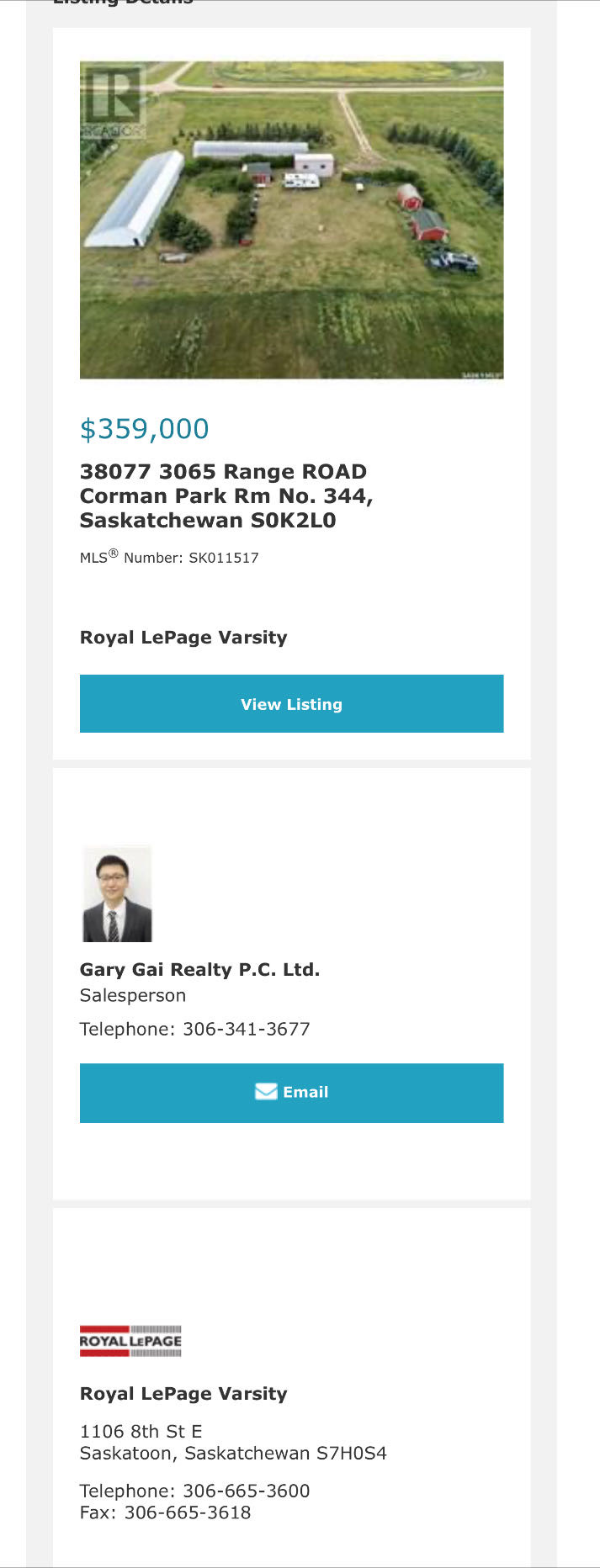 9.8英亩的优质平坦农业-住宅用地出售!距离萨斯卡通北部的Costco仅12分钟车程,兼具即用价值和长期投资潜力。该地块位于城市未来城市发展规划区内,靠近即将建设的环路和主干道扩展项目,受益于基础设施发展和区域钾矿资源潜力,周边土地价值正稳步上升。该罕见物业已具备开展密集型农业/园艺经营的基础设施 (难得获批,审批通过率极低),包括两座温室(估值约10万加元)、一座30’ x 16’ x 12’的拱形车间/仓库(足够容纳一台拖拉机),以及三座额外的附属建筑用于储物。已有电力接入,配备一口85英尺深的水井,天然气管道距离地界约100米,便于接入使用。地块周围环绕成熟防风林,提供良好的隐私与自然保护。该地块还包含矿产权益,单独估值在3万至5万加元以上,尚有一笔未申领的赔偿金。无论是用于农业种植、自建住宅,还是商业开发,该地块都拥有开阔视野、发展潜力强,是兼具基础设施、收益机会与开发吸引力的稀缺优质资产。挂牌价格:$359000。详情请联系地产经纪Gary Gai 盖王睿 3063413677 微信:gary3677 网站:garygai.com