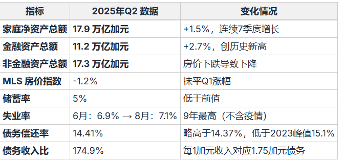 总体来看,加拿大家庭财富依然保持韧性,股市强劲支撑金融资产,但房地产下滑和劳动力市场疲软带来一定挑战。未来增长将趋于温和,需关注失业率及房贷压力对家庭财务的影响。