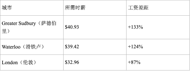 Zoocasa 根据 Rentals.ca 提供的 51 个加拿大城市的租金数据进行分析,计算出一个单身全职劳动者要**“32%法则”**租得起一居室的最低收入。