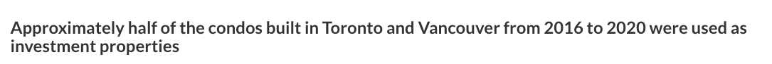 2016–2020 年建成的多伦多公寓中,有 55.2% 被用作投资房产。