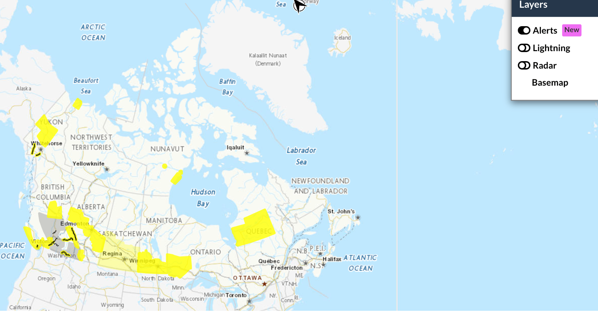 该警告涵盖南半部几乎所有主要城市,不包括Prince Albert,Melfort,Tisdale
