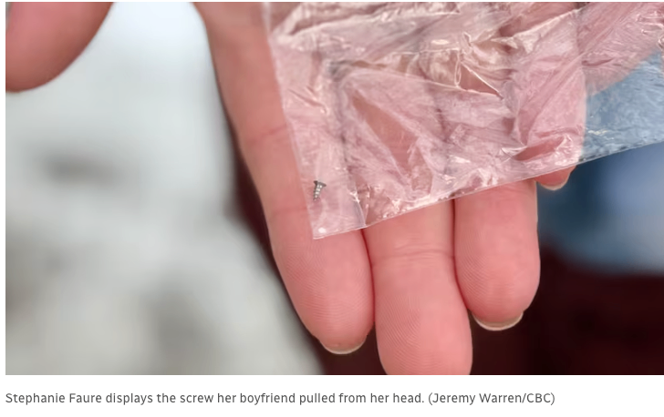 萨省女子称医生未采信其说法,男友随后取出头部外露手术螺丝