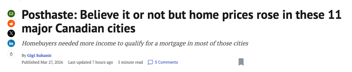 Ratehub 表示,2 月份加拿大 13 个主要城市中,有 11 个城市的房价按月上涨,因此在这些城市中,大多数购房者想通过按揭压力测试,需要更高收入才行。