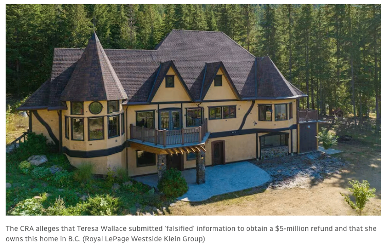 CRA 表示,基于这些**“伪造的信息”,Wallace 随后申请退回近 500 万加元的多缴税款,尽管税局现在认为,她根本没有缴过这些税,也根本没有赚到这 1,000 万加元**。