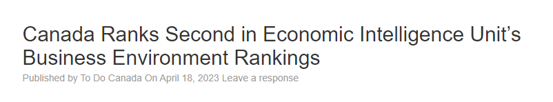 根据Economic Intelligence Unit- EIU 2023 年第二季度的最新商业环境排名,英国《经济学人》报纸的姊妹公司经济智库预测,新加坡、加拿大和丹麦将在未来五年内拥有最佳商业环境。