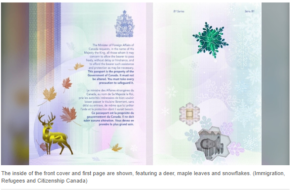在宣布这一消息的同时,官员们还公布了加拿大的新护照设计,其特点是加强了安全措施,新的彩色外观和全新的封面。