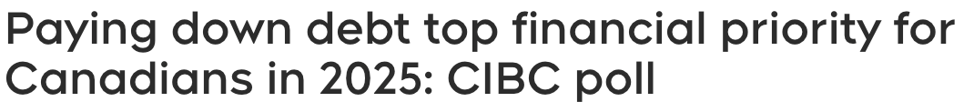 CIBC表示,进入2025年,还清债务是加拿大人的首要财务目标。