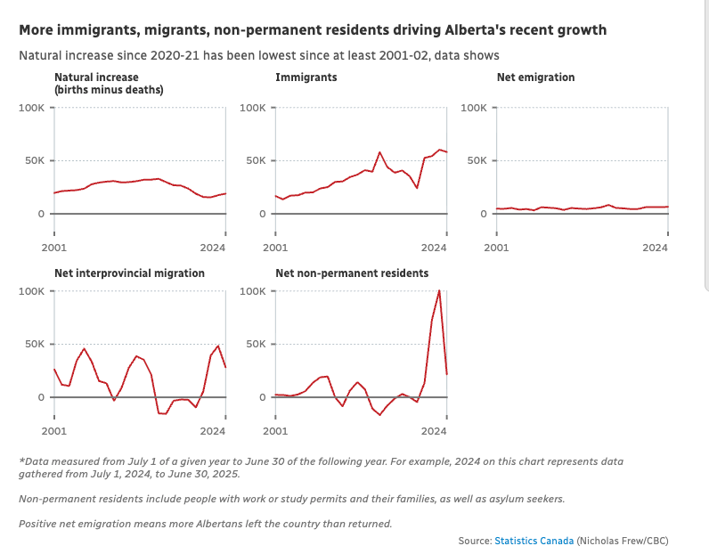 统计局数据显示,自 2021 年以来,加拿大人口增长中超过六分之一发生在阿尔伯塔。