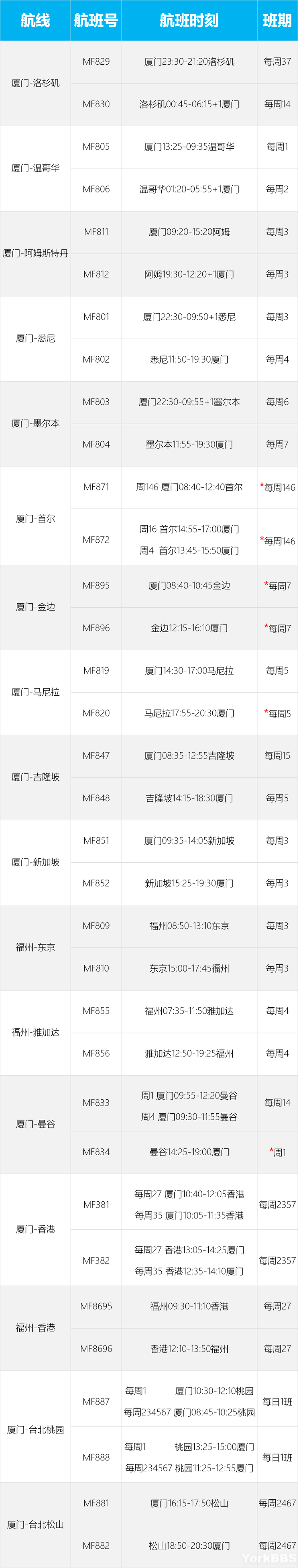 • *MF871/2“厦门=首尔”周四仅执行9月8日;