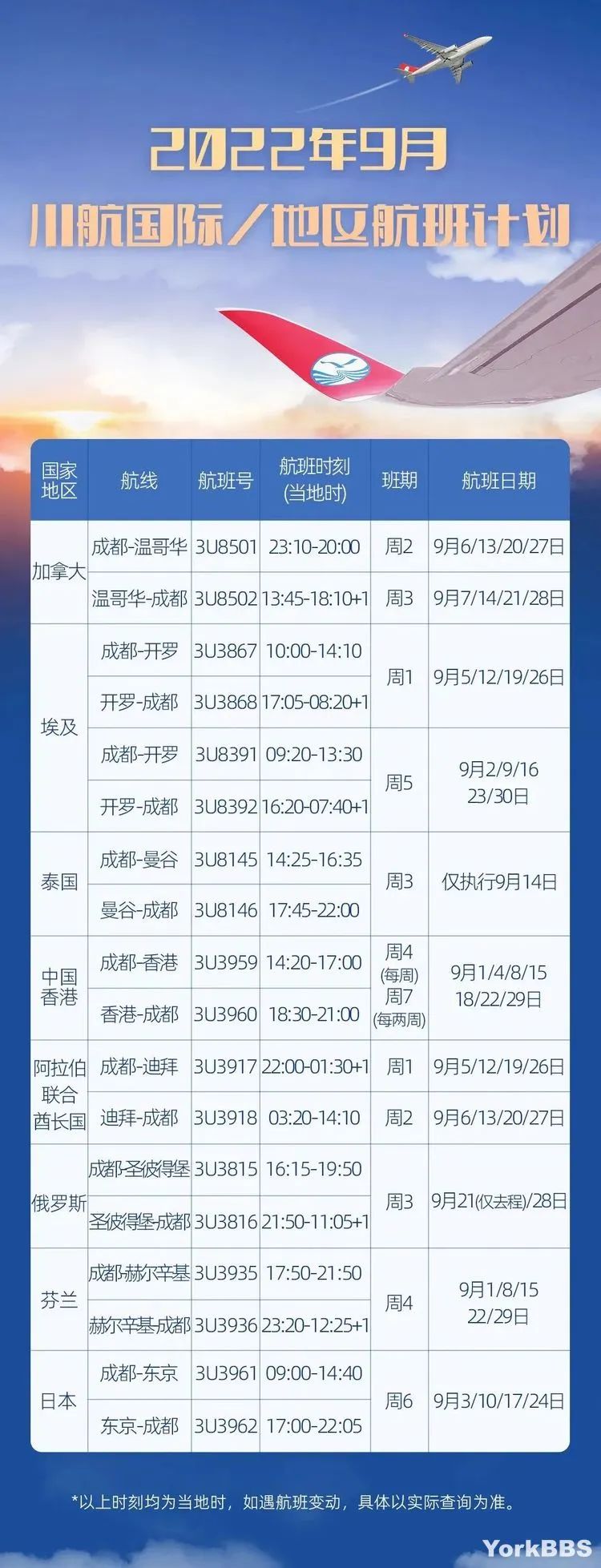 中国国际航空、南方航空、厦门航空等各大航空公司近日相继发布9月国际及地区航班计划。大家可以一起看下: