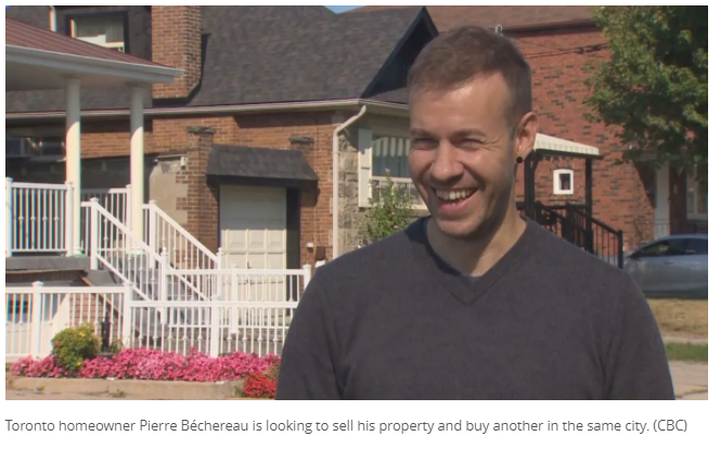 房主 Pierre Béchereau 作为买家和卖家都看到了双方的放缓,因为他正试图卖掉他在多伦多东区的房子,搬到同一个城市的另一个地方。
