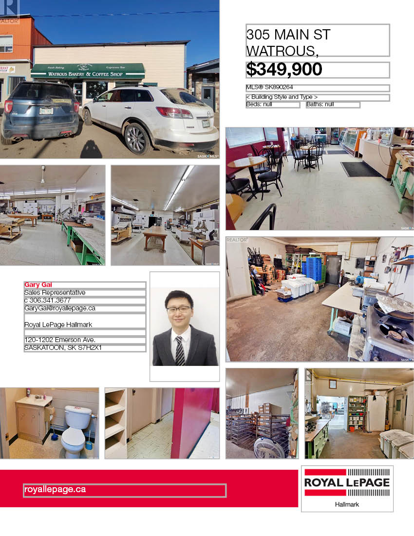 著名温泉旅游小镇Manitou Beach 主街Watrous bakery卖土地物业加生意。3116尺,地理位置好,方圆小镇独家烘培生意,客户源稳定持续增长,已在当地营业超过五十年,口碑极佳远近闻名,有可观的盈利收入。周围有矿井正在开发建设,且靠近Manitou Beach铁路枢纽,距离Regina一个半小时车程, 同时距离Saskatoon仅一小时车程。前半店铺有一个零售空间加咖啡店,桌椅和冰箱等设备齐全。后半店铺为操作室仓库,可直达停车位。土地建筑所有的设备都包含。开价$349,900, 有意请联系地产经纪Gary Gai 30634 3677 微信:gary3677 网站:garyga
