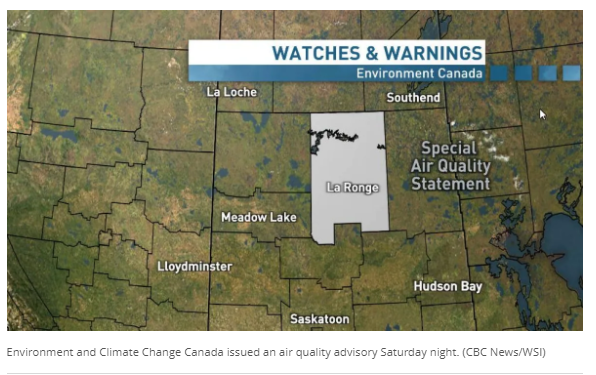 Lac LaRonge Indian Band 的首席 Tammy Cook-Searson 说,大火在周五下午 3 点 30 分左右爆发。周六傍晚,ECCC 为萨斯喀彻温省的La Ronge、蒙特利尔湖和Pinehouse发布了一份特别的空气质量声明。