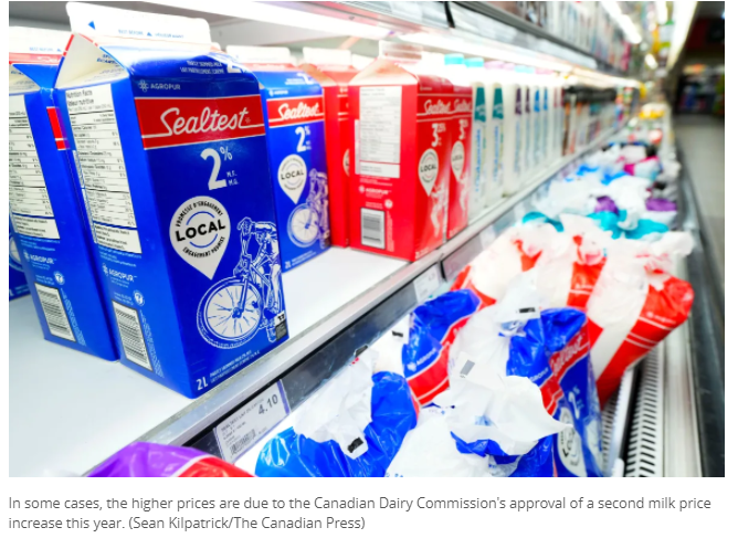 在某些情况下,更高的价格是由于加拿大乳业委员会(Canadian Dairy Commission)批准今年第二次上调牛奶价格。9月1日,农家奶价格将每升上涨约2美分,即2.5%。