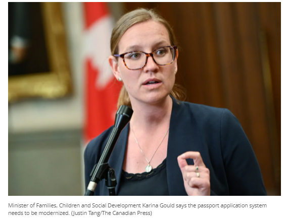 加拿大广播公司新闻询问负责护照服务的家庭部长卡琳娜·古尔德,加拿大人在未来几周应如何办理护照申请。