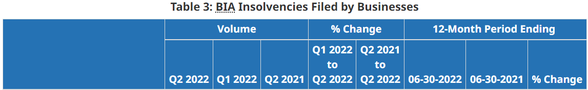 在 2022 年 6 月 30 日之前的 12 个月中,有 703家公司申请破产,而 2021 年全年有832家公司申请破产。到 2022 年 6 月 30 日,共有 2,176 份消费者提案,而 2021 年为 1,870 份。