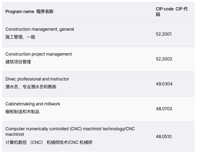✅ 与此同时,还新增了119个紧缺专业,这项更新使得PGWP的可申请专业总数达到920个。主要集中在以下领域(部分名单):