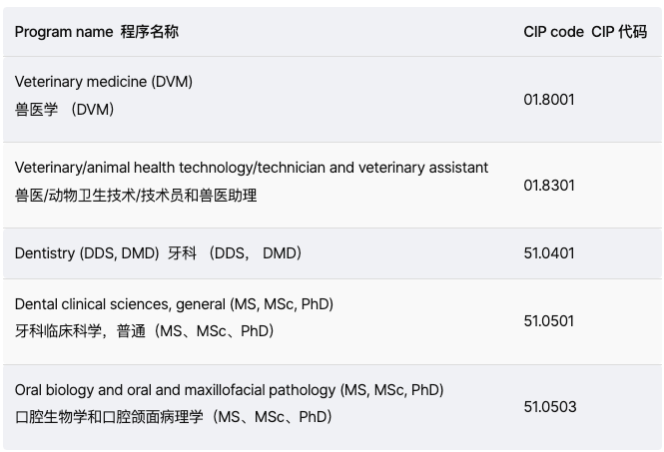 以下是科学、技术、工程和数学 STEM 计划不再符合 PGWP 资格: