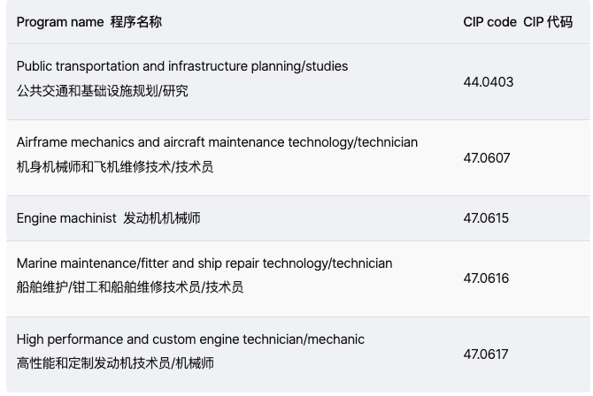以下是交通专业不再符合 PGWP资格