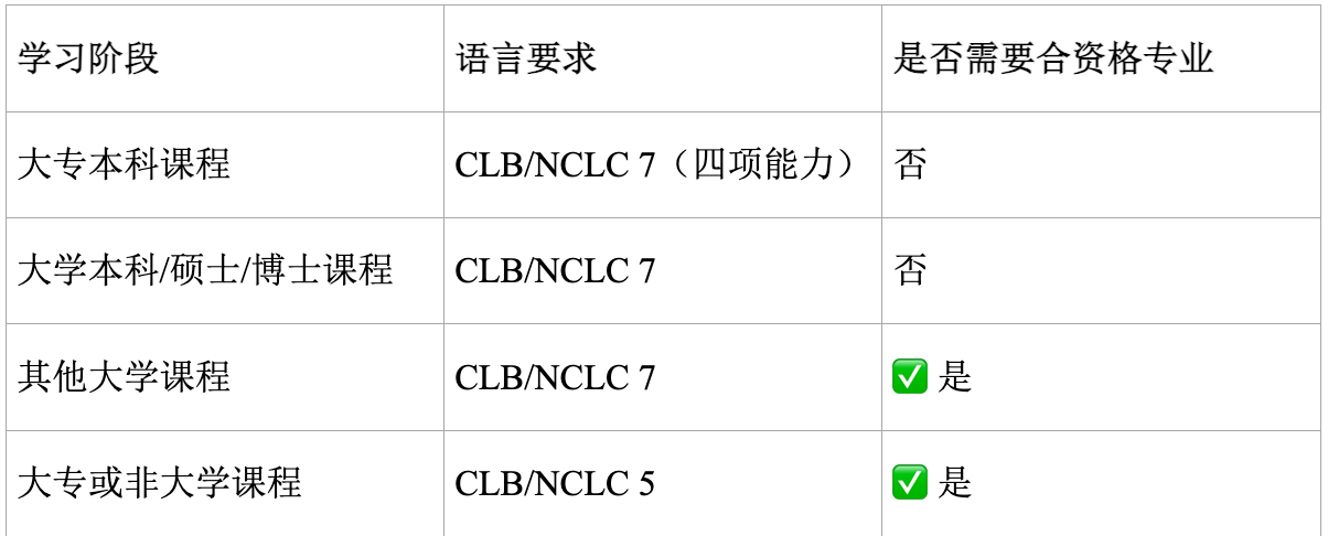 其他申请 PGWP 的基本语言要求