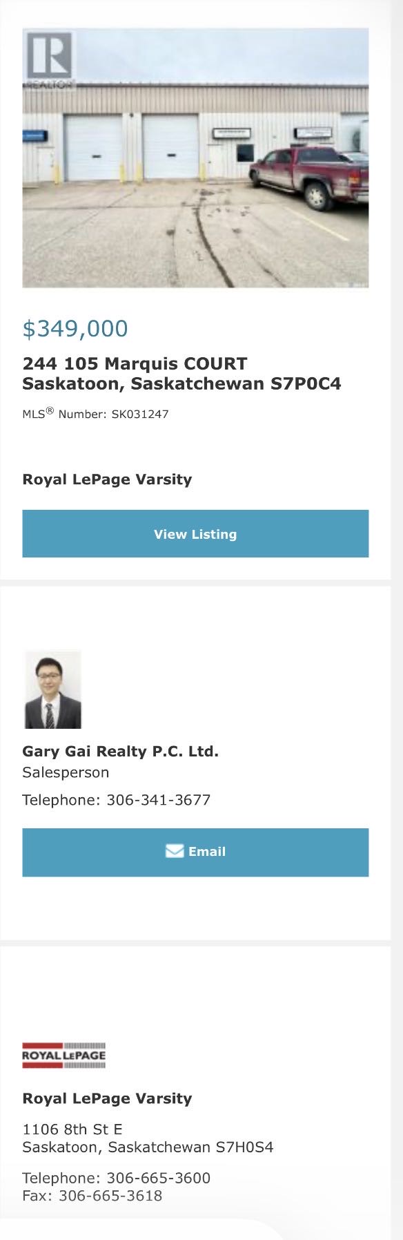 📍 244-105 Marquis Court 萨斯卡通Marquis Drive核心工业区的工业产权商业物业出售,地理位置便利,可快速连接Idylwyld Drive及通勤桥,交通条件好。该单元面积约1,500平方英尺,内部已完成基础装修,布局实用,包含办公室、会议室及独立洗手间。配备三相电、带隔油/沉淀功能的地漏(interceptor pit),以及12’ x 14’升降门,满足多种使用需求。分区为IL1,适用于多种工业及商业用途,无论自用或作为仓储空间均较为合适。挂牌价格:$349000。详情请联系地产经纪Gary Gai 盖王睿 3063413677 微信:gary3677 网站:garygai.com