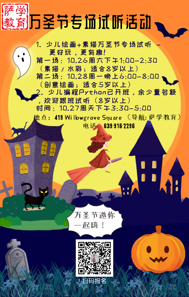 地点:419 Willowgrove Square (谷歌导航: 萨学教育)