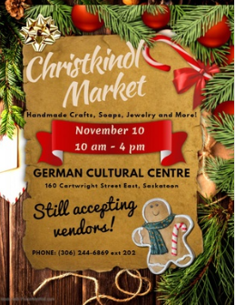 工匠精细工艺品市场第二年重返德国文化中心。自1979年以来,这个市场一直在展示萨斯喀彻温省最好的手工艺品,并被评为购物者和艺术家中最好的圣诞节市场之一。快来购买各种媒体上的手工艺术品。