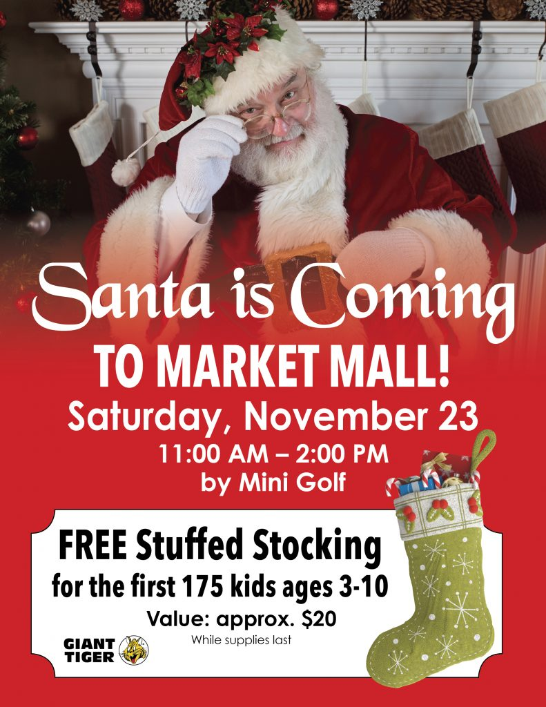 圣诞老人在11月23日上午11点至下午2:00pm到达商场Mini Golf,他不会空手而来!前175位小朋友3-10岁可获得一个毛绒袜子价值约20加元。 时间:2019年11月23日 周六11am—2pm 地址:Market Mall 2325 Preston Ave S, Saskatoon 网址:https://saskatoonmarketmall.com/评论还没有评论。在 App 里参与评论收藏